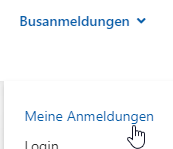 Über den Menüpunkt Busanmeldung -> Login könnt ihr euch mit euren Zugangsdaten anmelden und dort eine Anmeldung stornieren. Eure Anmeldungen findet ihr unter dem Punkt Busanmeldung -> Meine Anmeldungen